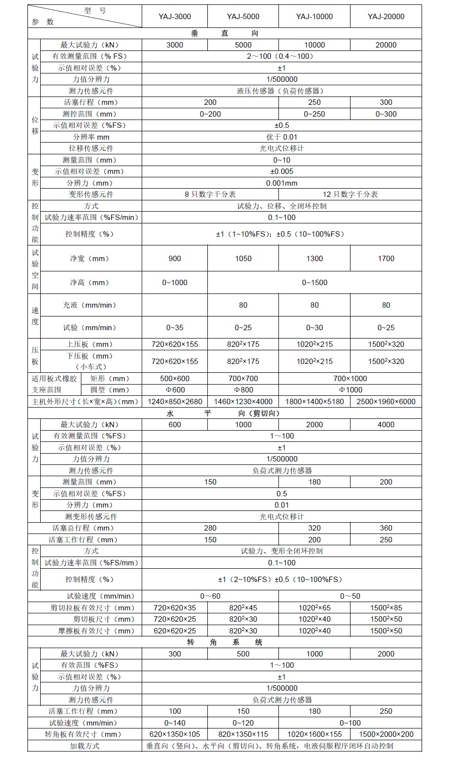 YAJ系列微機控制電液伺服壓剪試驗機是在YAS系列電液伺服壓力試驗機上,配備橫向剪切裝置和轉(zhuǎn)角試驗裝置組合而成的多功能試驗機。